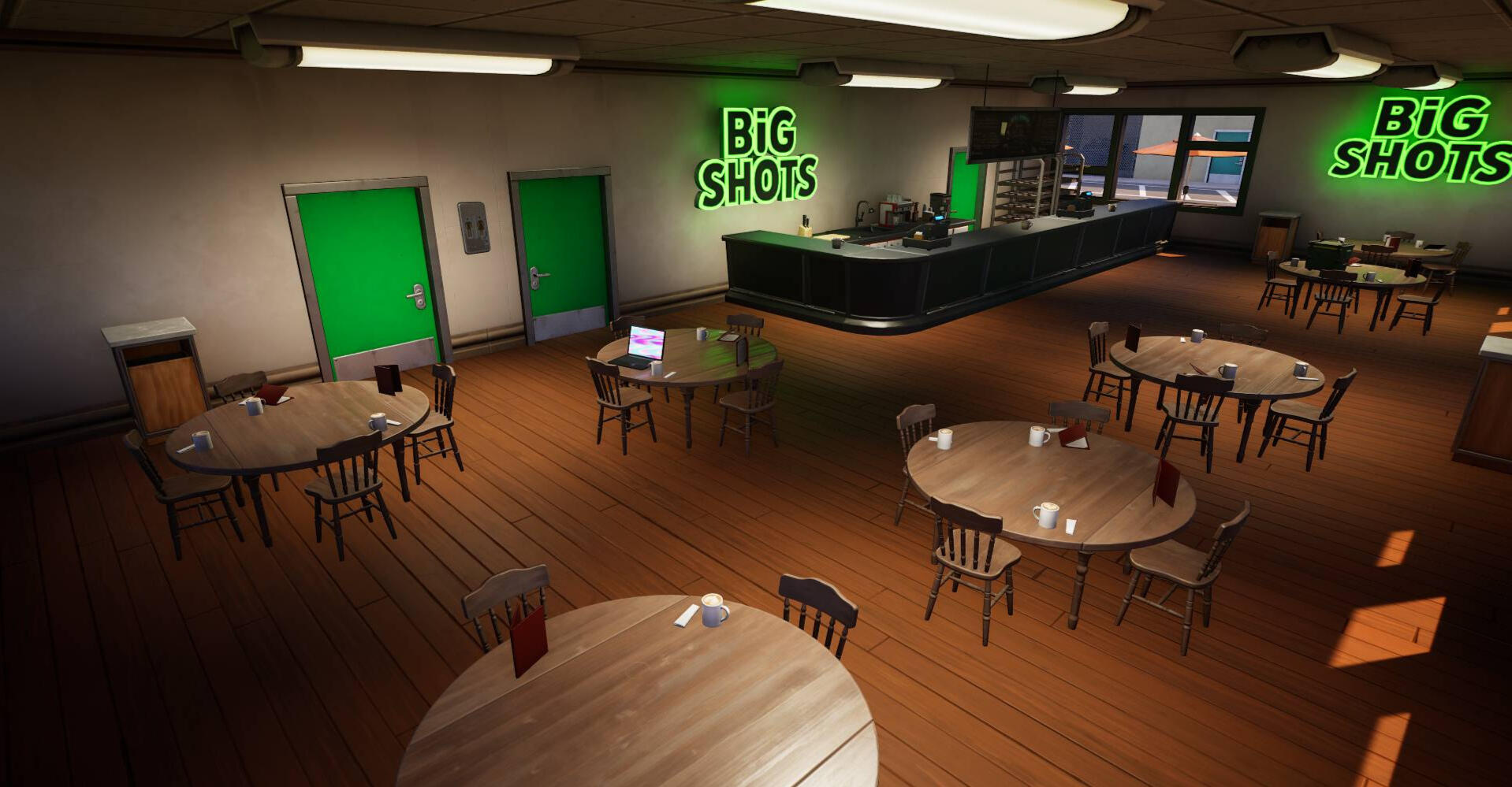 These images are from the first game I developed. I collaborated with another student, who managed the coding, while I focused on creating the assets and level layout. Our objective was to create a reinterpretation of the zombie mode from Call of Duty. In the game, players eliminate zombies to earn points, which can be used to unlock doors that provide access to upgrades and additional space for maneuvering while dodging zombies. However, as players open more doors, the spawning of zombies increases.I designed four distinct zombie types to enhance gameplay variety: a basic green zombie, a faster red variant, a purple ranged zombie, and a larger green zombie that serves as a boss character. Additionally, I developed several firearms for the zombies to drop, including a shotgun, machine gun, and minigun, to provide players with a fighting chance. I also designed the starting area to ensure that tables could serve as cover against ranged enemies, allowing players to strategically defend themselves. In the outdoor section, I utilized sandbags to create natural obstacles, guiding players movement and limiting access to the designated restaurant area.